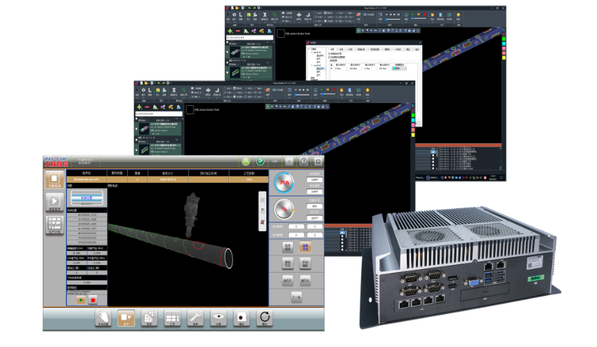 大族智控全新一代自主知識產權的HAN’S 801-Tube激光切管數控系統,采用Intel四核高性能CPU平臺,配合無風扇密閉鰭片散熱工控機,運用高性能運動控制算法,有效提升管材切割速度。