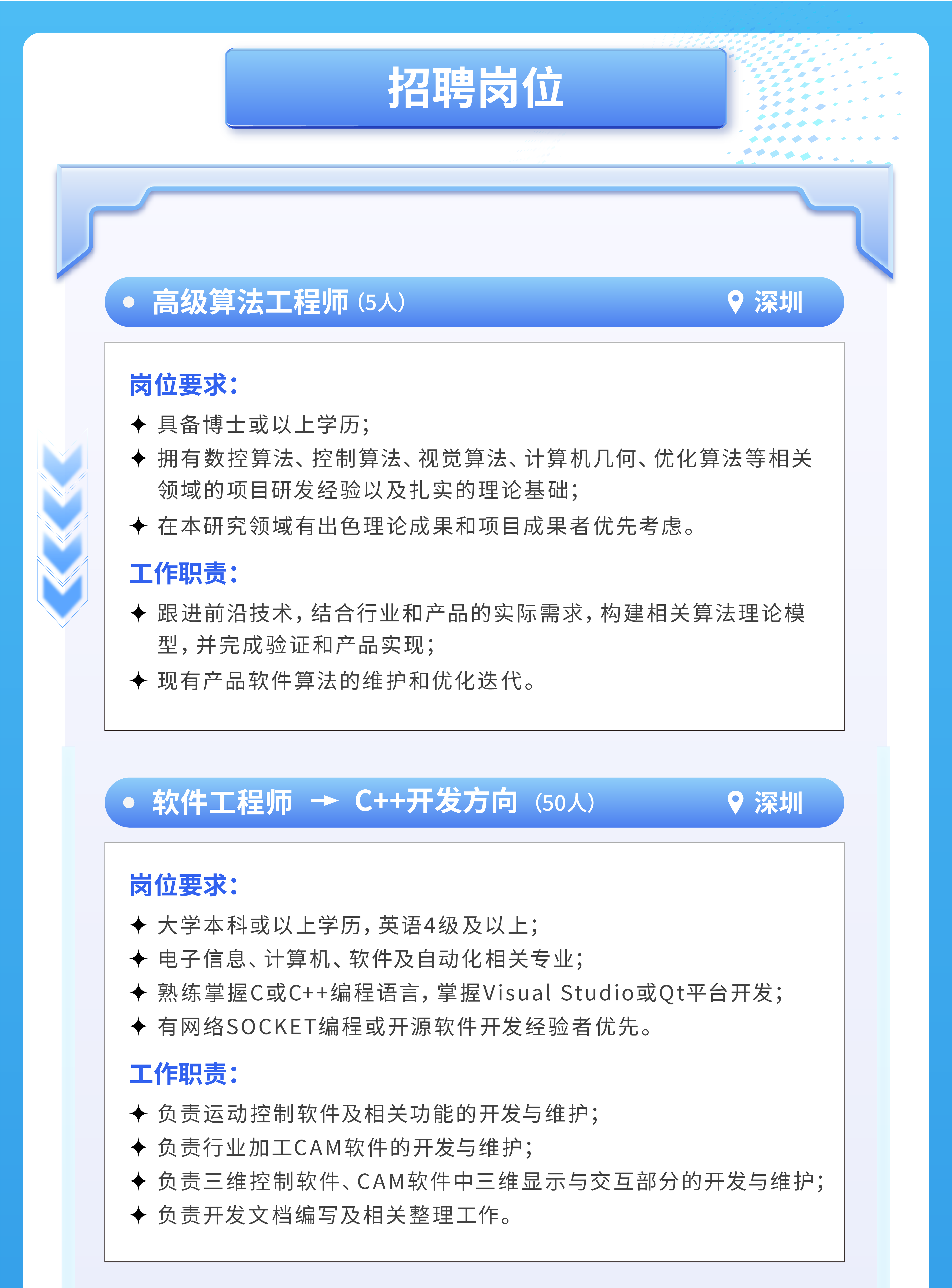 關(guān)鍵字:追光族夢 智控未來丨2025年大族智控春季校園招聘火熱開啟!高級算法工程師,軟件工程師(C++開發(fā)方向、嵌入式開發(fā)方向、視覺應(yīng)用開發(fā)方向、AI應(yīng)用開發(fā)方向、運動控制算法研究方向、應(yīng)用工程師、工藝開發(fā)工程師),電控工程師,技術(shù)支持工程師。
