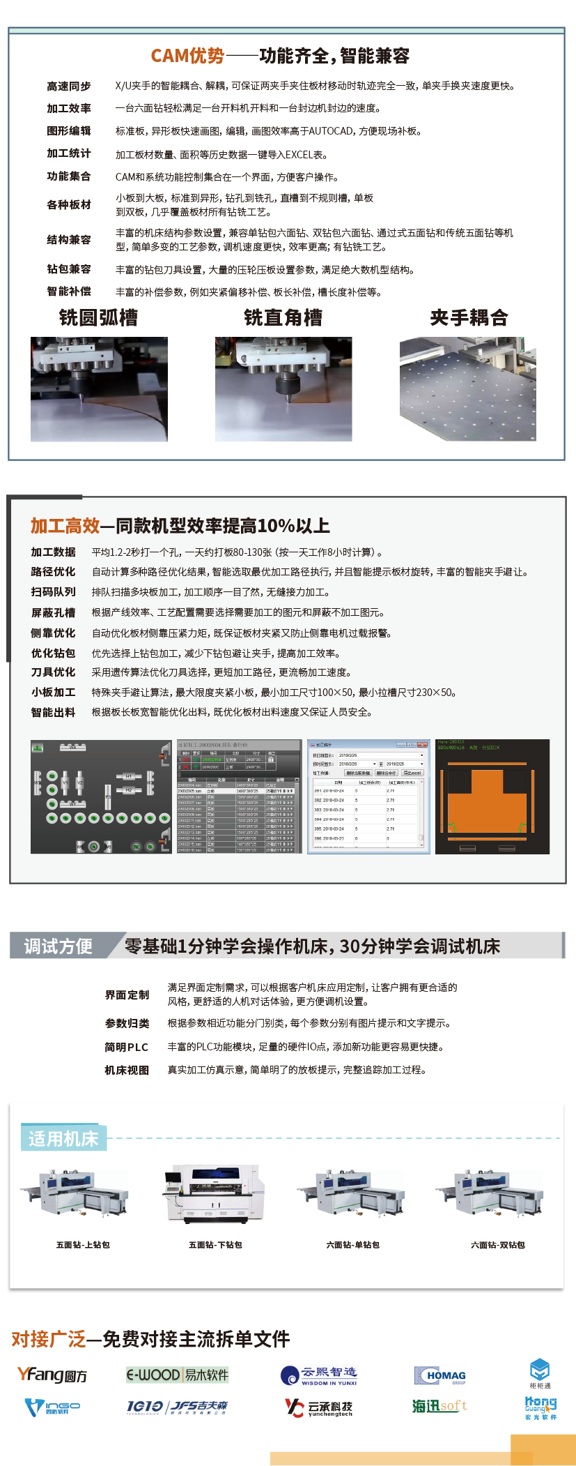 數控六面鉆也稱為六面數控鉆孔加工中心,可以一次完成加工板材的正反面和四個側孔所有孔位的加工,雙面同時開槽、倒角異形加工等功能。可根據板件尺寸自動移動式定位,不用翻板不用掉頭,完全做到通過式打孔,正反面側面一次完成,大幅度降低人工成本,提高生產效率。
